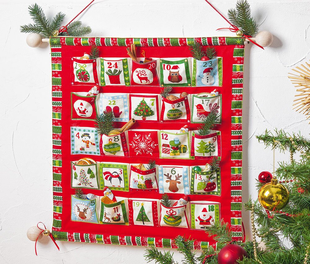 Na pierwszy rzut oka ten kalendarz adwentowy wygląda jak obrazek. Jego różne elementy tworzą harmonijny patchworkowy wzór. Drobne szczegóły, takie jak tradycyjne dzwoneczki, nadają mu świąteczny charakter. Udekoruj swoją ścianę tym pięknym kalendarzem, wypełnij go drobnymi prezentami i spraw radość sobie i innym.