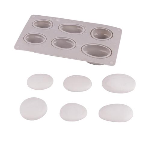 Wymieszaj beton z niewielką ilością wody zgodnie z instrukcjami dotyczącymi produktu, aby uzyskać kremową masę i wlej ją do form do odlewania kamieni. Pozostawić mieszaninę do wyschnięcia na co najmniej 12 godzin. Gotowe kamienie są na tyle twarde, że można je ostrożnie wyjąć z formy odlewniczej.