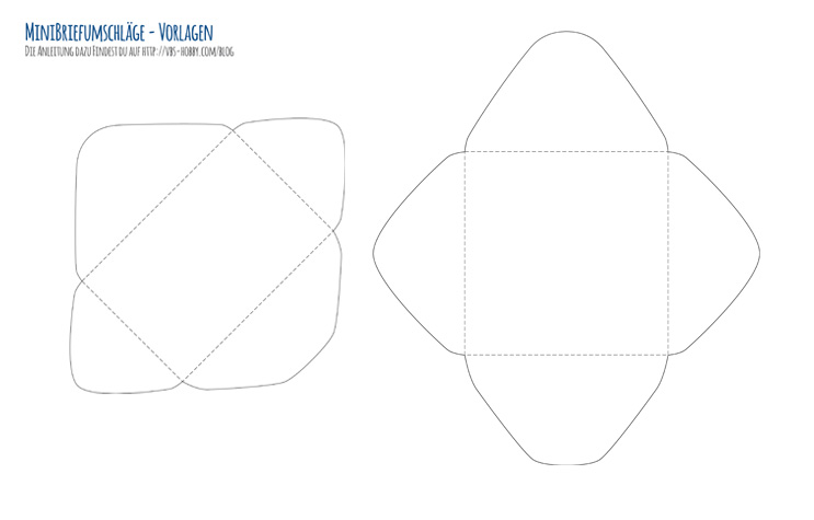 Ladet euch als Erstes die Vorlagen für die Umschläge herunter und druckt die benötigten aus. Es gibt einmal eine Variante für einen rechteckigen und einmal für einen quadratischen Umschlag.