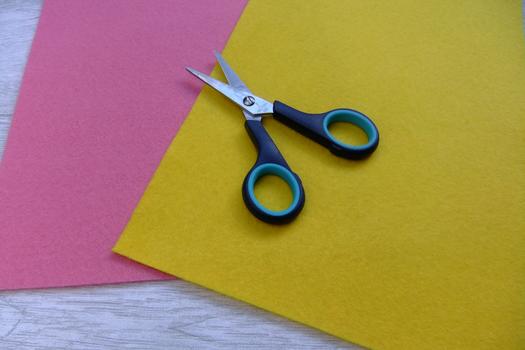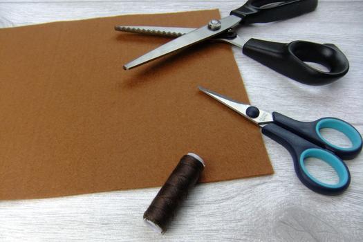 Schneidet den Bogen Filz in der Mitte durch, sodass ihr zwei Rechtecke (20 x 15 cm) erhaltet.
