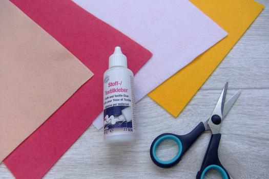 Filz in maisgelb, weiß, brombeer und hautfarbe