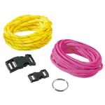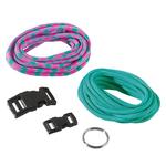 Ideal für den Einstieg sind die Paracord-Starter-Sets in vier verschiedenen Farbkominationen. Zwei Seile in der Länge von 2,6m sowie ein Schlüsselring und zwei Klickverschlüsse sind im Paket enthalten. Eine einfache Knüpfanleitung gibt es obenauf.