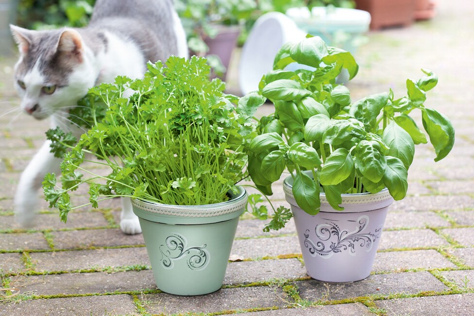 Donice w stylu wiejskim mogą być zaprojektowane w dowolnym rozmiarze. Pastelowy wygląd i ozdobne wąsy uzupełniają romantyczną koronkę. Te terakotowe doniczki można wykorzystać do przechowywania ziół w kuchni w stylu wiejskim lub, dzięki przezroczystemu lakierowi, do dekoracji stołu ogrodowego.