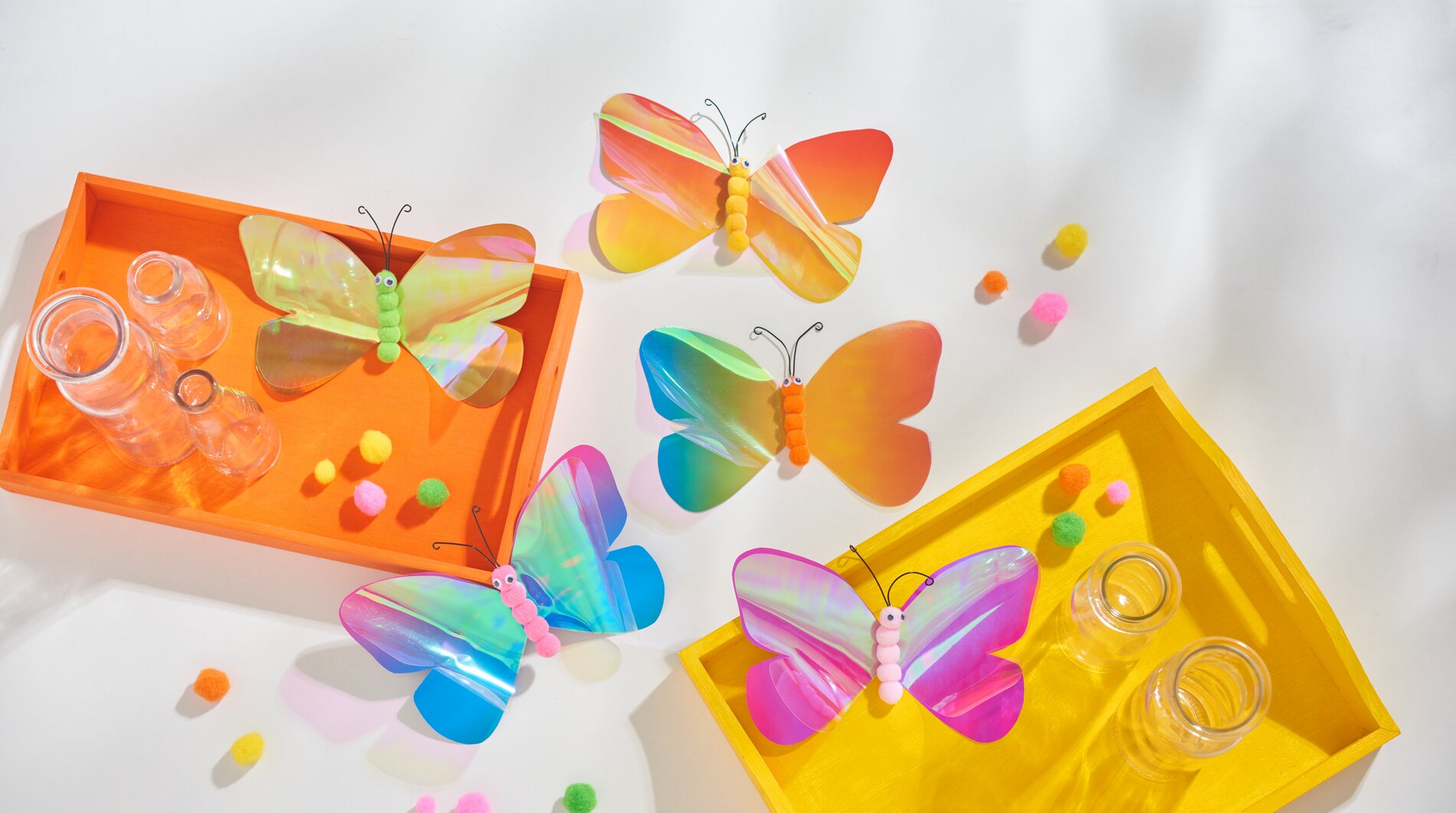 Odetnij 12 cm drutu, złóż go na środku i ściśnij na dole, tak aby dwa końce drutu utworzyły anteny. Użyj szczypiec okrągłych, aby uformować czułki. Nałóż kropkę kleju na główkę pompona i przyklej czułki. Na koniec przyklej ciało do skrzydeł.
