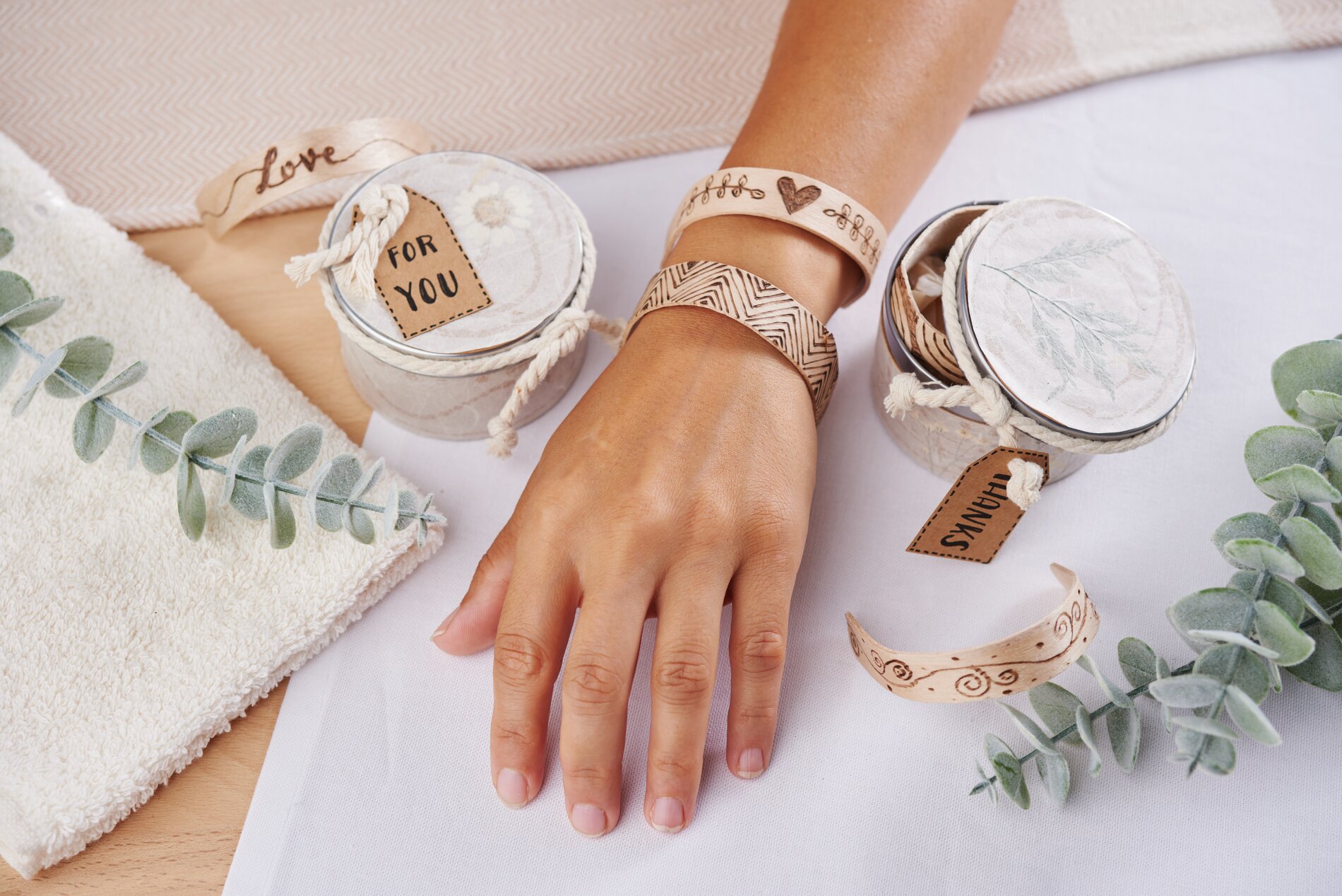 Następnie umieść drewniane szpatułki we wrzącej wodzie. Pozostaw je tam na co najmniej 1 godzinę. Następnie ostrożnie wyjmij je z wody i umieść w okrągłym otworze do wyschnięcia (najlepiej na noc). Najlepiej nadaje się do tego szklanka, kubek lub wazon, w zależności od wielkości nadgarstka.