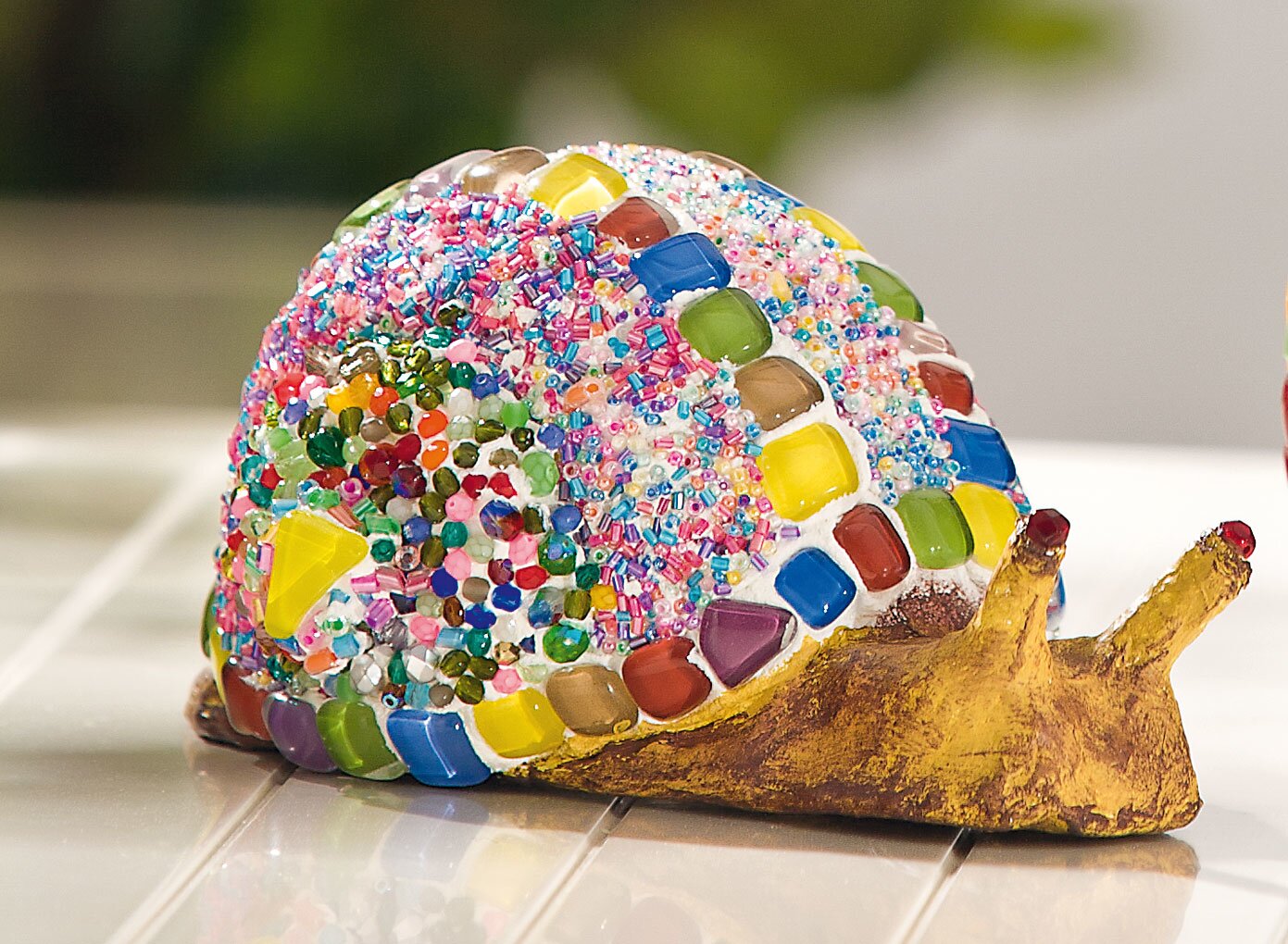 Udekoruj ciało ślimaka farbą rzemieślniczą, a na koniec przyklej 2 koraliki akrylowe na czułkach.
