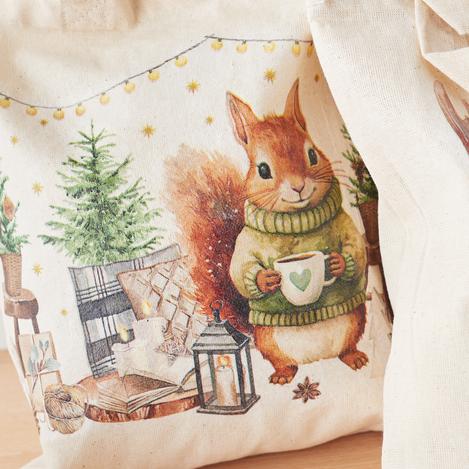 Aby zapewnić trwałość wzoru nawet po praniu (w temperaturze do 30 stopni w delikatnym cyklu), należy utrwalić lakier. Aby to zrobić, wyprasuj materiałową torbę bez użycia pary. Umieść kawałek papieru do pieczenia na wzorze, aby chronić go podczas prasowania i prasuj go przez kilka minut.