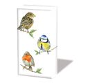 Szukają Państwo specjalnego motywu do swoich projektów DIY? W takim razie proszę zwrócić uwagę na chusteczki papierowe "Birds" od Ambiente! Motyw przedstawia uroczego wróbla, niebieską sikorkę i rudzika na białym tle i jest idealny do motywów wiosennych i przyrodniczych. Nadruk znajduje się na jednej stronie, rewers jest biały. Papierowe chusteczki mają wymiary 21 x 21 cm i są pakowane po 10 sztuk .