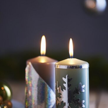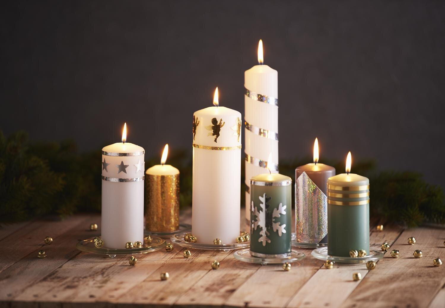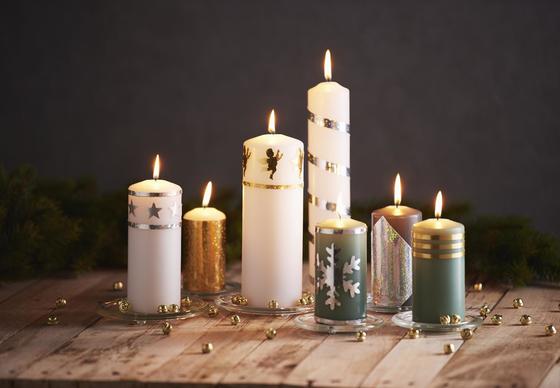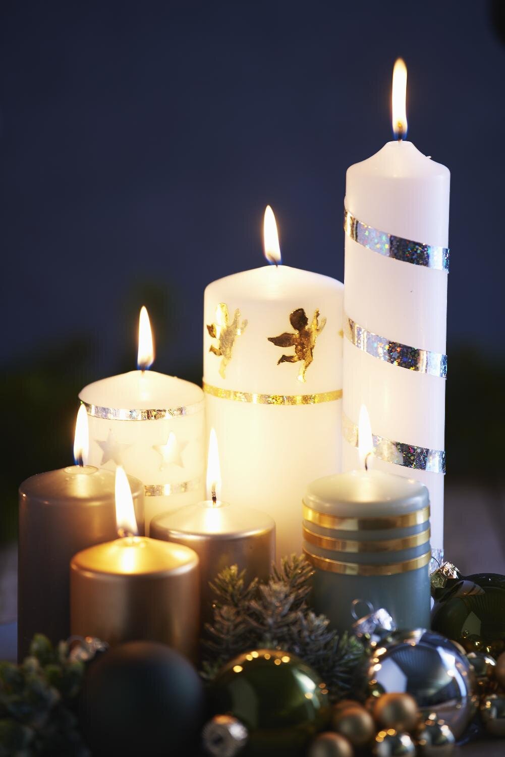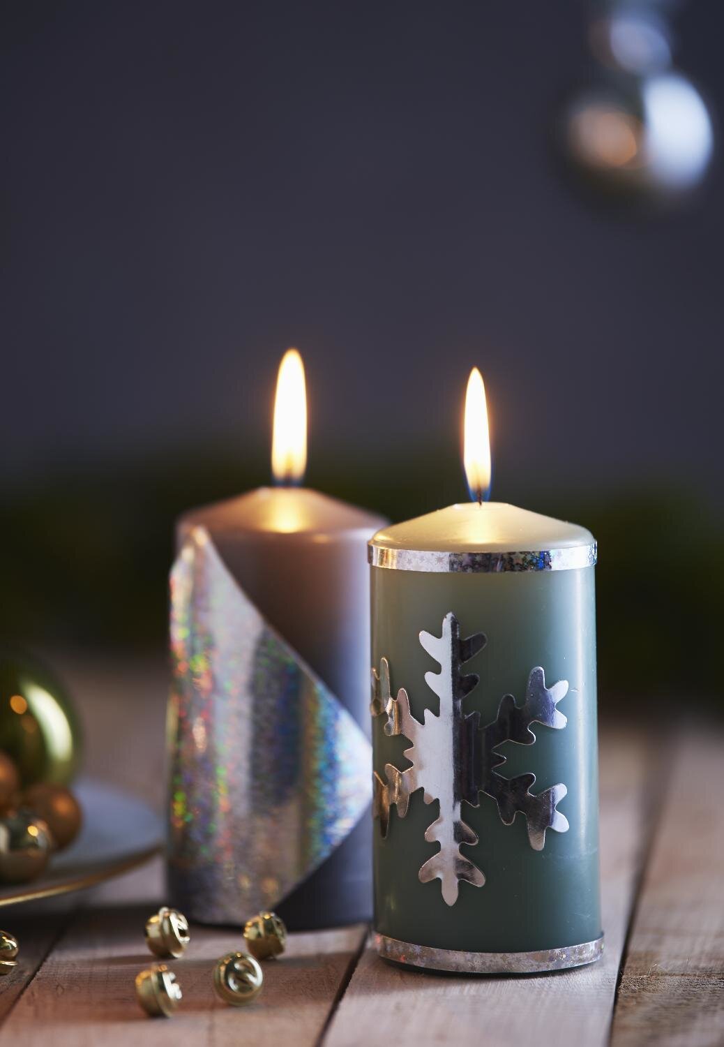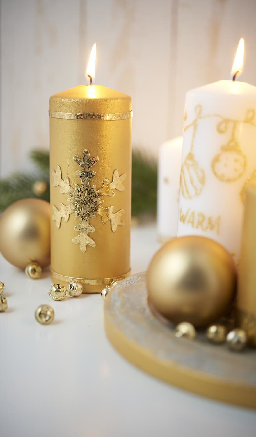 Oczywiście możesz również użyć gotowych świec do dekoracji stołu. Kolorowe świece filarowe można łączyć z białymi świecami. Specjalne motywy, takie jak płatek śniegu, można wyciąć z