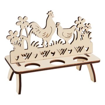 Po całkowitym wyschnięciu farby, złóż poszczególne części podstawki na jajko. Uchwyt na jajko został zaprojektowany tak, aby poszczególne części idealnie do siebie pasowały. Jeśli połączenia nie są wystarczająco ciasne, możesz przymocować części razem za pomocą odrobiny kleju rzemieślniczego. Dzięki temu Twoje dzieło sztuki będzie stabilne i zachowa swój kształt.