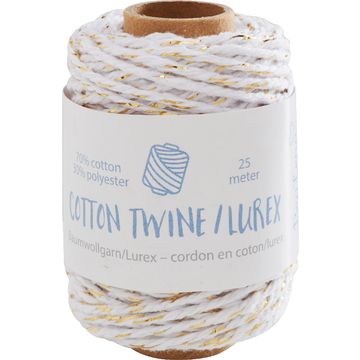 Bawełniany sznurek z lureksem i formowalnym rdzeniem z drutu, Biały/Złoty
