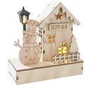 Drewniany zestaw składa się z 20 części, z których powstaje motyw wtyczki z pudełkiem na baterie, domek z napisem XMAS, motyw bałwana, choinka, element ogrodzenia (materiał ze sklejki) i świecąca latarnia (tworzywo sztuczne). Pozwala to stworzyć nastrojową scenę, która przyciągnie uwagę każdego. Latarnia LED zapewnia ciepłe, zachęcające światło, a konstrukcja ze sklejki daje możliwość uwolnienia kreatywności. Niezależnie od tego, czy jest pomalowana, pomalowana sprayem czy pokryta papierem - zaprojektuj dom świateł według własnego gustu.