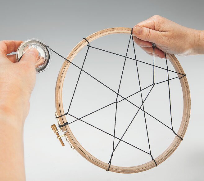 Powtarzaj ten proces, aż w pierścieniu powstanie siatka. Przeplataj również poszczególne nitki w siatce.