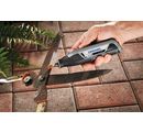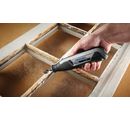 Akumulatorowa wyrzynarka DREMEL 7760 Lite to wielofunkcyjne narzędzie do precyzyjnych i lekkich projektów rzemieślniczych. Urządzenie jest w pełni naładowane po 2,75 godzinach, dzięki czemu można od razu rozpocząć pracę. Posiada akumulator litowo-jonowy o napięciu 3,6 V i pojemności 2,0 Ah. Ustawienie prędkości można zmieniać, a prędkość biegu jałowego wynosi od 8000 do 25 0000 obrotów na minutę. Narzędzie waży ok. 270 g, a jego wibracje wynoszą 2,5 m/m².