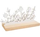 Przynieś wiosnę prosto do swojego domu dzięki naszej czarującej drewnianej dekoracji "Kwiatowa łąka na cokole"! Ta artystycznie zaprojektowana dekoracja wnosi odrobinę natury i elegancji do każdego pomieszczenia dzięki pomalowanym na biało drewnianym kwiatom. Idealna do Państwa wiosennych dekoracji, nada parapetom, półkom lub stołom świeżą i zachęcającą atmosferę.