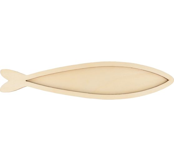 Proszę przekształcić tę Drewniana ryba z ramką w morskie arcydzieło! Ten zestaw 2 elementów wykonanych z nieobrobionej sklejki jest idealny dla każdego, kto chce puścić wodze fantazji. Dzięki długości 30 cm i szerokości 6,5 cm ryba oferuje mnóstwo miejsca na Państwa artystyczne wizje. Dołączona ramka zapewnia dodatkową wysokość 0,9 cm i jest idealna do przyklejenia i wypełnienia błyszczącymi kamieniami mozaikowymi lub innymi elementami dekoracyjnymi. Do przymocowania ramki potrzebny będzie również klej rzemieślniczy.