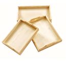 Ten praktyczny i wytrzymały zestaw tac składa się z trzech różnych rozmiarów: L 37 x W 29 cm, L 34 x W 26 cm i L 31 x W 23 cm. Wszystkie mają ok. 4 cm wysokości.