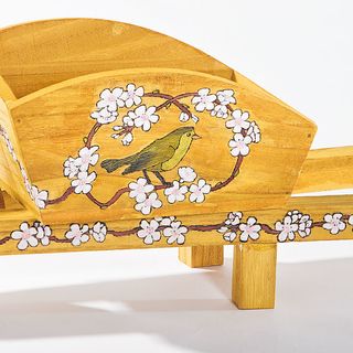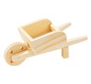 Miniaturowa taczka ma ok. 12 cm długości i jest wykonana ze sklejki. Małą taczkę można jeszcze bardziej wykończyć - np. bejcować, glazurować lub pomalować zgodnie z życzeniem.