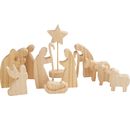 Dwunastoczęściowa drewniana dekoracja zawiera pięknie zaprojektowane figurki w rozmiarach od 2,5 do 13,5 cm. Dzięki grubości 1,4 cm są one stabilne, a jednocześnie łatwe w obsłudze. Każdy szczegół opowiada historię Wigilii i przenosi magię tego wyjątkowego czasu prosto do Państwa domu.