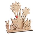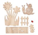 Motyw składa się ze ślimaka, płotu ogrodowego, kwiatów i biedronek. Jest ozdobiony z jednej strony i niepomalowany z wyjątkiem biedronki, więc można go zaprojektować w dowolny sposób za pomocą farb rzemieślniczych, pisaków akrylowych lub kolorów kredowych. Poszczególne części można przymocować za pomocą odrobiny kleju rzemieślniczego (brak w zestawie), aby stworzyć wyjątkowe dzieło sztuki. Wspaniały element dekoracyjny na wiosnę i uroczy pomysł na prezent na zaproszenia na poranki kawowe.