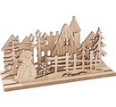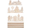 Szczegółowe motywy wykonane z fornirowanej sklejki i drewna MDF obejmują pięknie zaprojektowane domy, kościół, jodły, latarnię uliczną i wesołego bałwana. Mierzący 19,8 x 7 x 10,5 cm zestaw będzie przyciągał wzrok w Państwa domu.