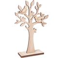 Drewniana tablica VBS z motywem "Drzewo i ptaki" składa się z 2 części. Materiał to fornirowana sklejka o wymiarach ok. 13,5 x 4 x 20,5 cm. Motyw należy przymocować za pomocą kleju rzemieślniczego, aby zapewnić jego stabilność.