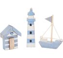 Zestaw drewnianych dekoracji "Maritime " pozwoli Państwu wprowadzić do domu marynistyczne akcenty i przenieść się w marzeniach na najpiękniejsze plaże świata. Trzy pięknie namalowane motywy - łódź, latarnia morska i dom - można idealnie ze sobą połączyć i dodać świeżego powiewu do Państwa dekoracji. Mierzące od 6 do 10 cm wysokości drewniane figurki są idealne do postawienia na parapecie, stole lub półce.