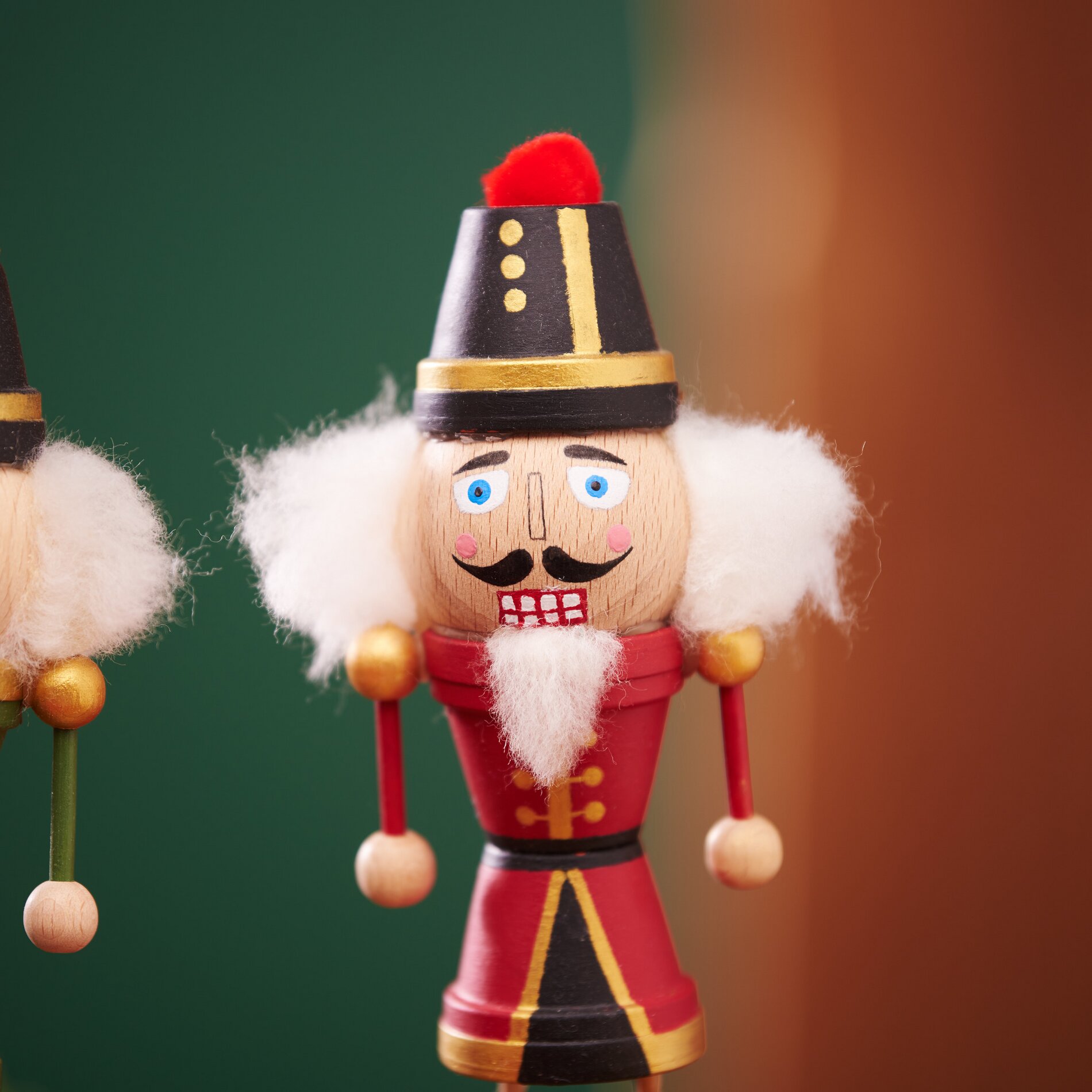 6. Aby uzyskać ramiona, skróć bambusowe patyczki od góry glinianego naczynia do talii. Pokoloruj je tak, aby pasowały do ciała. Narysuj drewniane koraliki na dłonie. Pomaluj wcześniej koraliki na złoto na ramionach. Przyklej gotowe ramiona, gotowe.