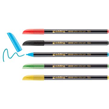 Odkryj wiele sposobów, w jakie możesz wykorzystać edding 1200, aby zrealizować swoją kreatywność. Udekoruj kartki urodzinowe, dekoracje ślubne lub projekty scrapbookingowe i nadaj im odrobinę ekstra dzięki metalicznym długopisom .
