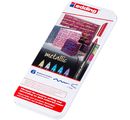 Niech Państwa kreatywność rozbłyśnie dzięki edding 1200 "Colour Pen Metallic"! Fantastyczne pisaki z włóknistą końcówką w połyskujących metalicznych kolorach natychmiast rzucą na Państwa czar. Zestaw ten, zapakowany w stylowe metalowe pudełko, zawiera 6 długopisów, które wiedzą, jak zaimponować pigmentowym tuszem zarówno na jasnym, jak i ciemnym papierze. Proszę zainspirować się szerokim zakresem zastosowań i wyjątkowymi właściwościami tego produktu.