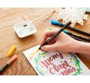 Pisaki z fibrową końcówką nadają się do rysowania i pisania, a także do szerokiej gamy dekoracji na jasnym i ciemnym papierze, kartonie i tekturze. Końcówka pędzelkowa ma szerokość linii 1-6 mm i umożliwia zarówno delikatne, jak i odważne pisanie i kolorowanie. Aby uzyskać efekt akwareli, wystarczy rozpuścić mokrą farbę w wodzie i malować zgodnie z życzeniem.
