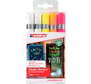 Zestaw markerów kredowych edding 4095 zawiera 4 kolory. Markery mają szerokość linii ok. 2-3 mm i nadają się do nietrwałego projektowania na ciemnych powierzchniach, szkle i lustrach. Idealnie nadają się również do oznaczania tablic w strefach wejściowych lub okien w zależności od pory roku.
