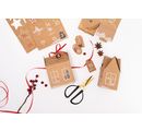 Enchanting advent calendar-Set "Gingerbread House" consisting of approx. 49 parts. The 24 kraft paper houses with detailed motif print in 4 different shapes have a size of approx. 12,0 x 6,0 x 6,0 cm, 12,0 x 7,5 x 7,5 cm, 13,0 x 9,0 x 6,0 cm as well as 18,5 x 5,5 x 5,5 cm and can be folded very easily.