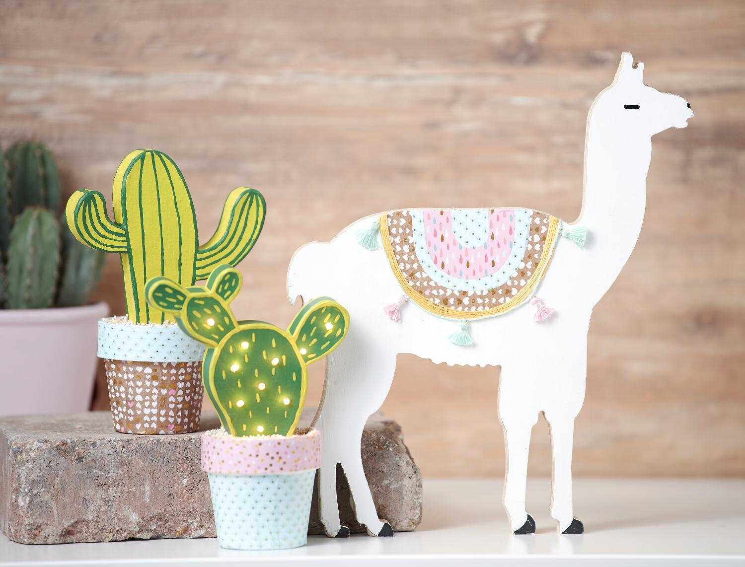 Who does not like llamas or alpacas? Alone or in combination with cacti they make a beautiful decoration. You too can make this trendy animal and embellish your home or make someone else happy!