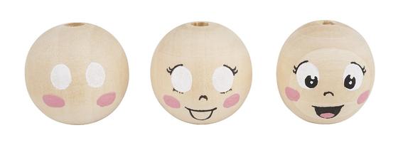 Now take Wooden ball a large one and paint it with hair and faces. There are no limits to your creativity. So the angels can wink, have a kissing mouth, sleep and much more. Below we show an example of how you can easily create a beautiful face in our step-by-step photo series.