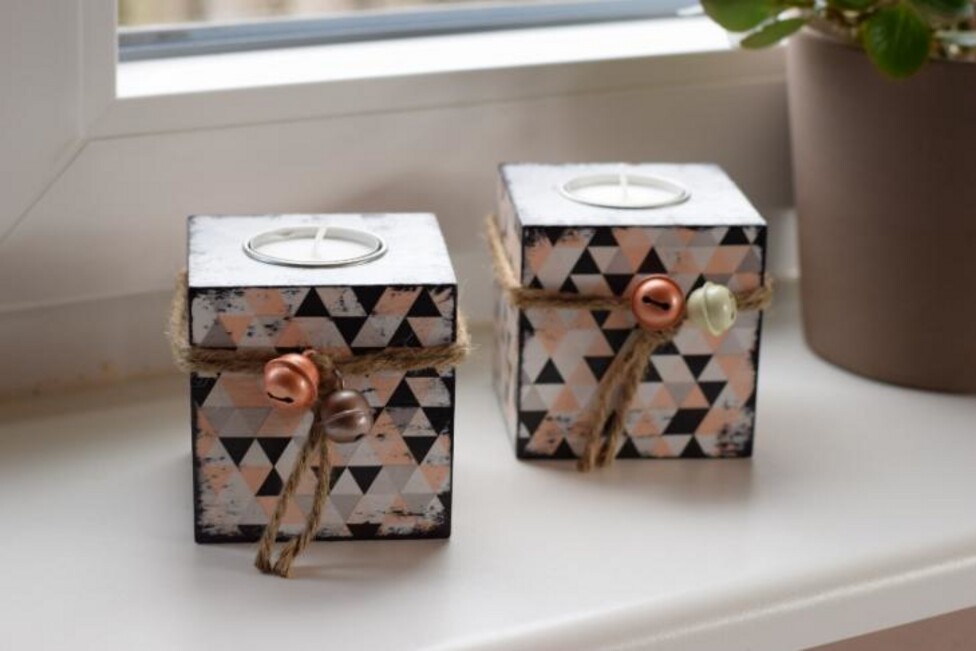 4. Decorate Finally, the tea light cubes are decorated as desired, for example with some Jute yarn, decoration-Jingles or some stamping ink for the shabby look