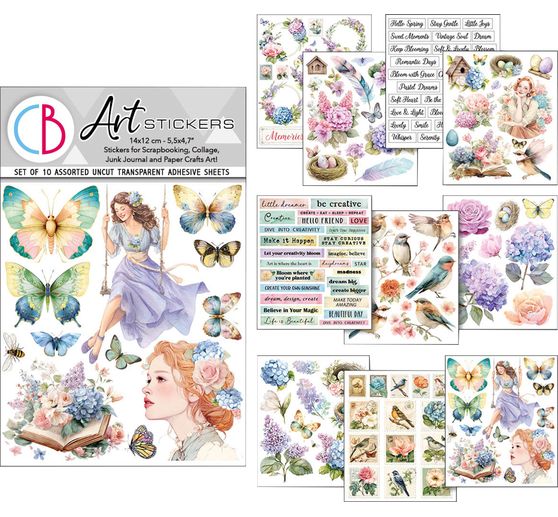 Discover the Art stickers "Daydreams". These sticker sheets are printed with springtime motifs such as butterflies, feathers and flowers. With 10 sheets full of inspiring designs, they offer you countless ways to embellish your scrapbooking layouts, junk journals or handmade cards.
