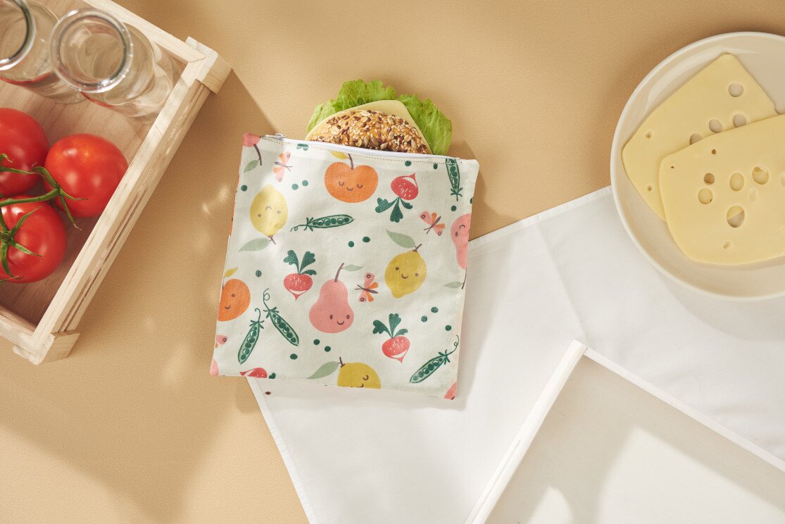 Coat the right sides of the fabrics with TexWax. In order to have a food-safe protective film on the fabrics, which can be wiped off with a damp cloth, we recommend that you do not treat the snack bag with heat afterwards. This will prevent the fabric from absorbing liquids (as described above).