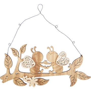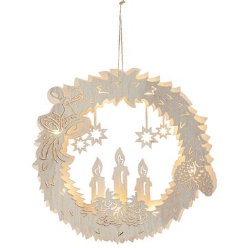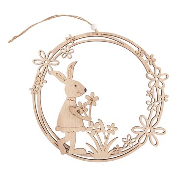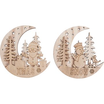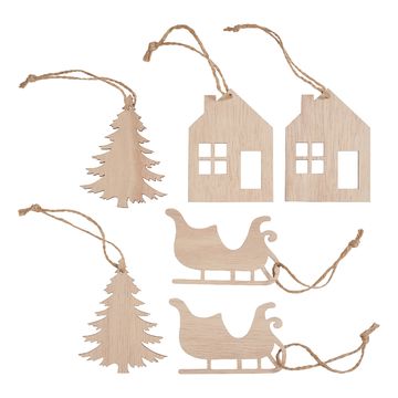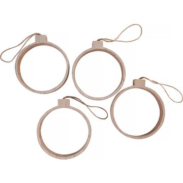 Wooden decoration pendant "Round" with ribbon, set of 4
