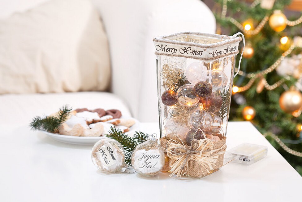 A simple vase becomes a loving welcome to the Christmas season. Atmospherically illuminated and nobly decorated, it is a wonderful decoration idea for your Advent season