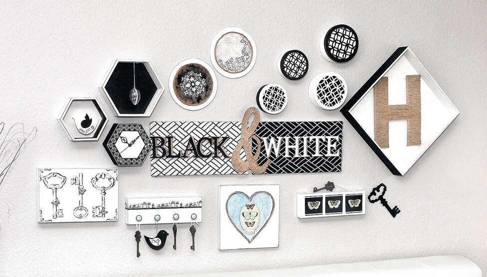 We show you different decoration ideas from the colour trend Black/White. Decorate your wall easily and quickly and use simple basic materials to decorate your wall or your living room.