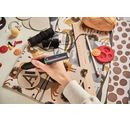 The practical Bosch Gluey hot glue stick offers many creative possibilities for gluing, fixing, repairing and decorating on glass, wood, plastic, MDF, Paper, papier-mâché, cardboard Stone and fabric. The ergonomic pen fits particularly well in the hand and allows precise application of the hot glue.