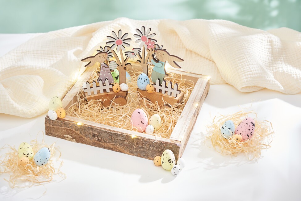 Easter is just around the corner and what better way to brighten up your home than with a unique, homemade decoration? Our step-by-step guide shows you how to create colorful stick-on motifs and make an atmospheric bowl shine with a chain of light . Not only will you have only fun crafting, but you will also create a beautiful unique piece that will delight your loved ones. So, let your creativity run wild and get started on your DIY-Project with our easy-to-follow instructions!