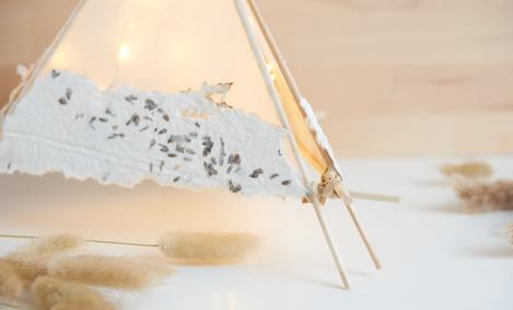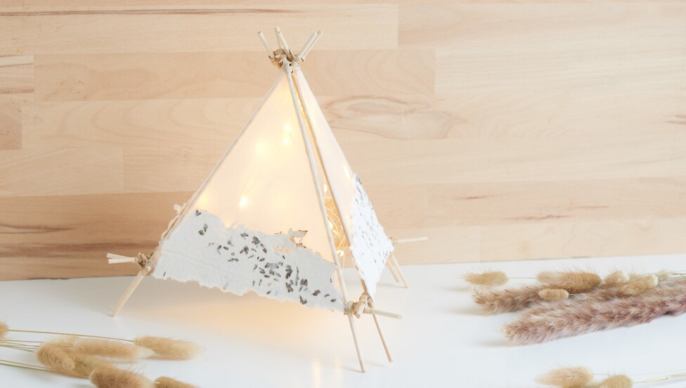 Are you looking for an idea for an exceptionally pretty and natural light decoration? Then this luminous teepee is just the thing for you.
