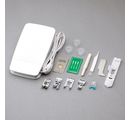 Buttonhole foot A, overcasting foot, monogram presser foot N, zip foot, presser foot J (on machine), button presser foot M, blind stitch foot R, arrow separator, 3 spools, needle set (3 pieces), gold colour needle with ball point (jersey needle #14), cleaning brush, screwdriver, dust cover, sewing machine, foot pedal, power cord, instruction manual.