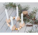 This candlestick is expandable! Through the hole can be threaded a ribbon or cord and thus more candlesticks "wooden ball" strung together. The candle decoration becomes a pretty eye-catcher when small wooden balls are threaded between the large balls. Craft paint, glitter, branding and hand lettering design can be used for personalized and color-matched effects, as well as ribbon bows and sprinkles.