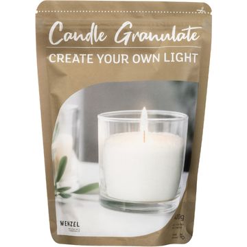 Immerse yourself in the world of candle making with the high-quality Candle sand granules. With the set, consisting of 400 g of granules and four wicks, you can create your own candle decorations. The granules are packaged in a printed and resealable bag and are perfect as a gift or for your own use.