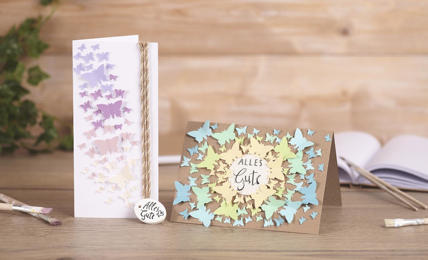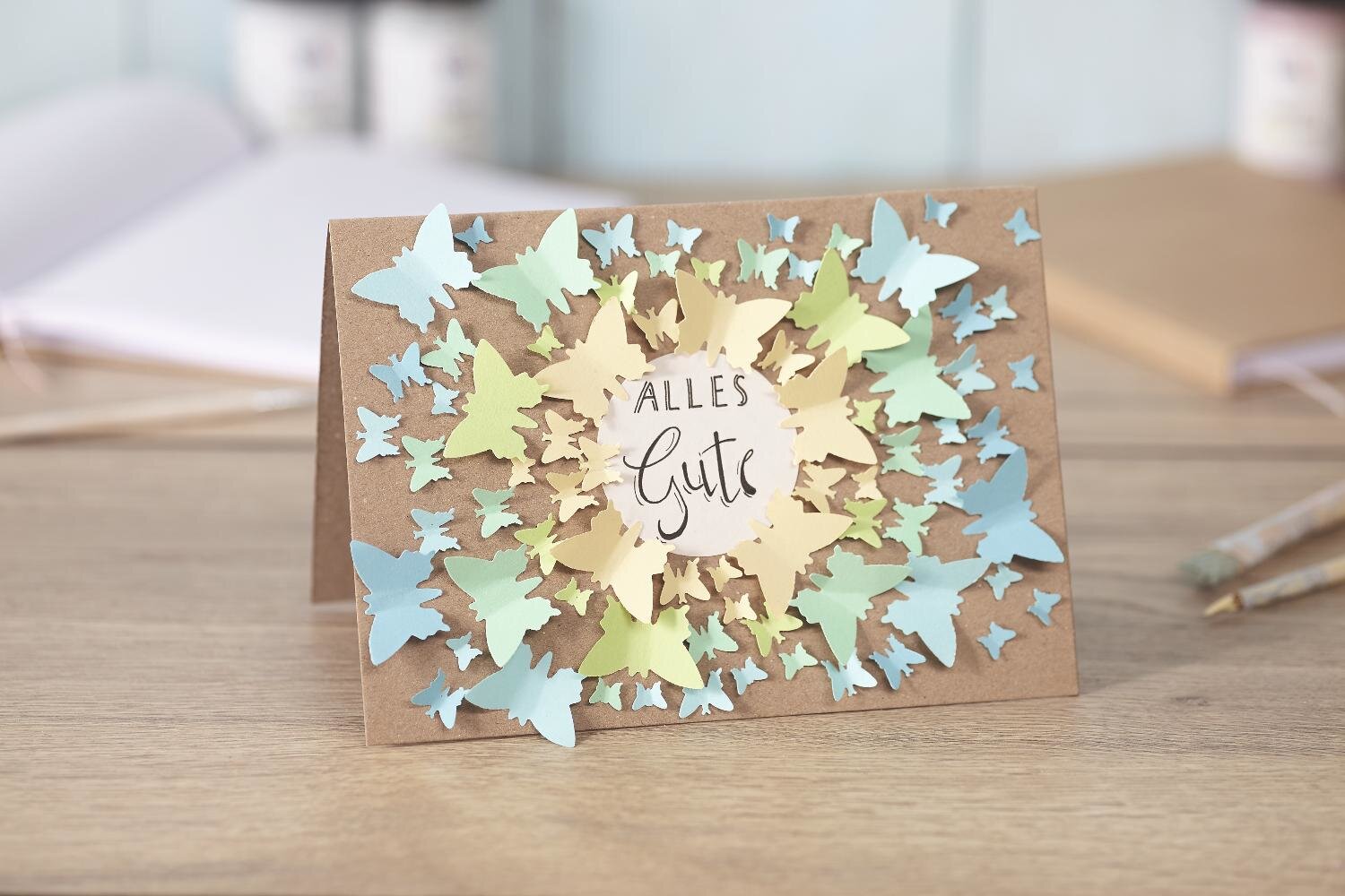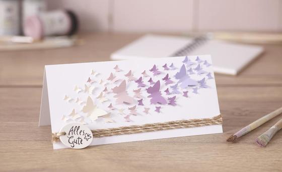 Extra tip: Position the butterflies on the card so that they become darker in the pastel colour from the inside out or form a colour gradient.