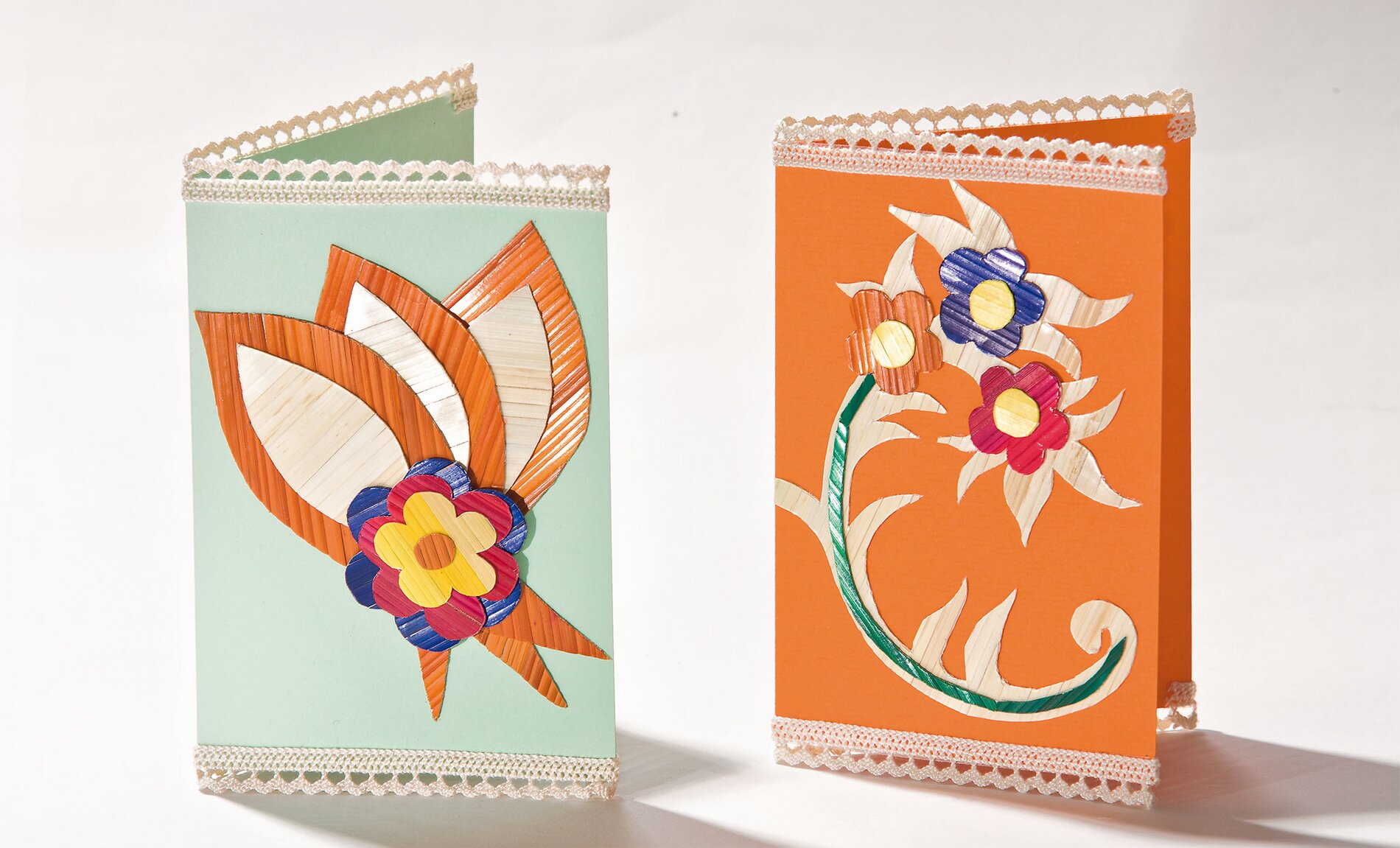 Cards with motifs made from straws
