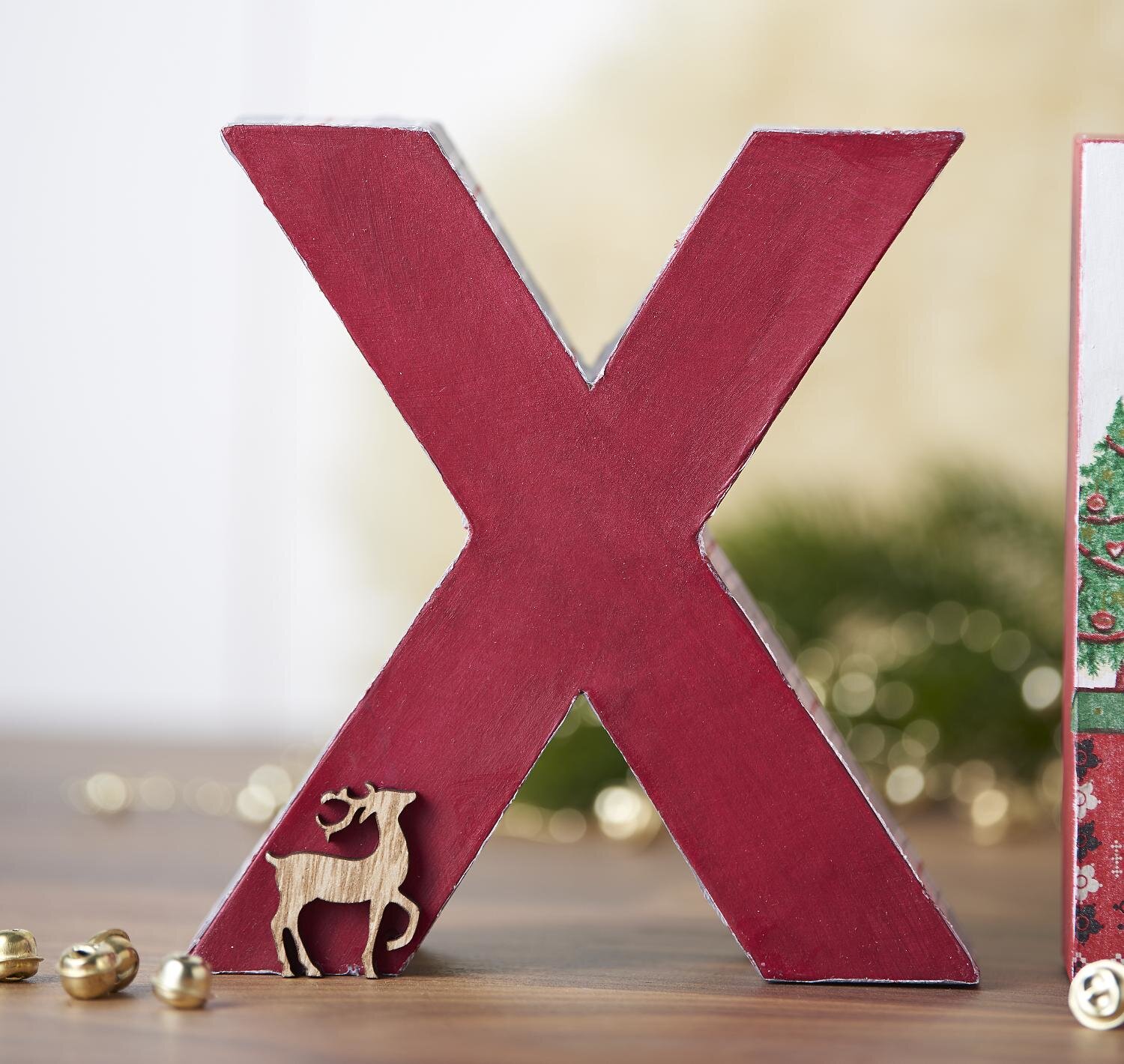 The large areas of the X are painted red, the sides white. All other letters are primed white or red on the sides.